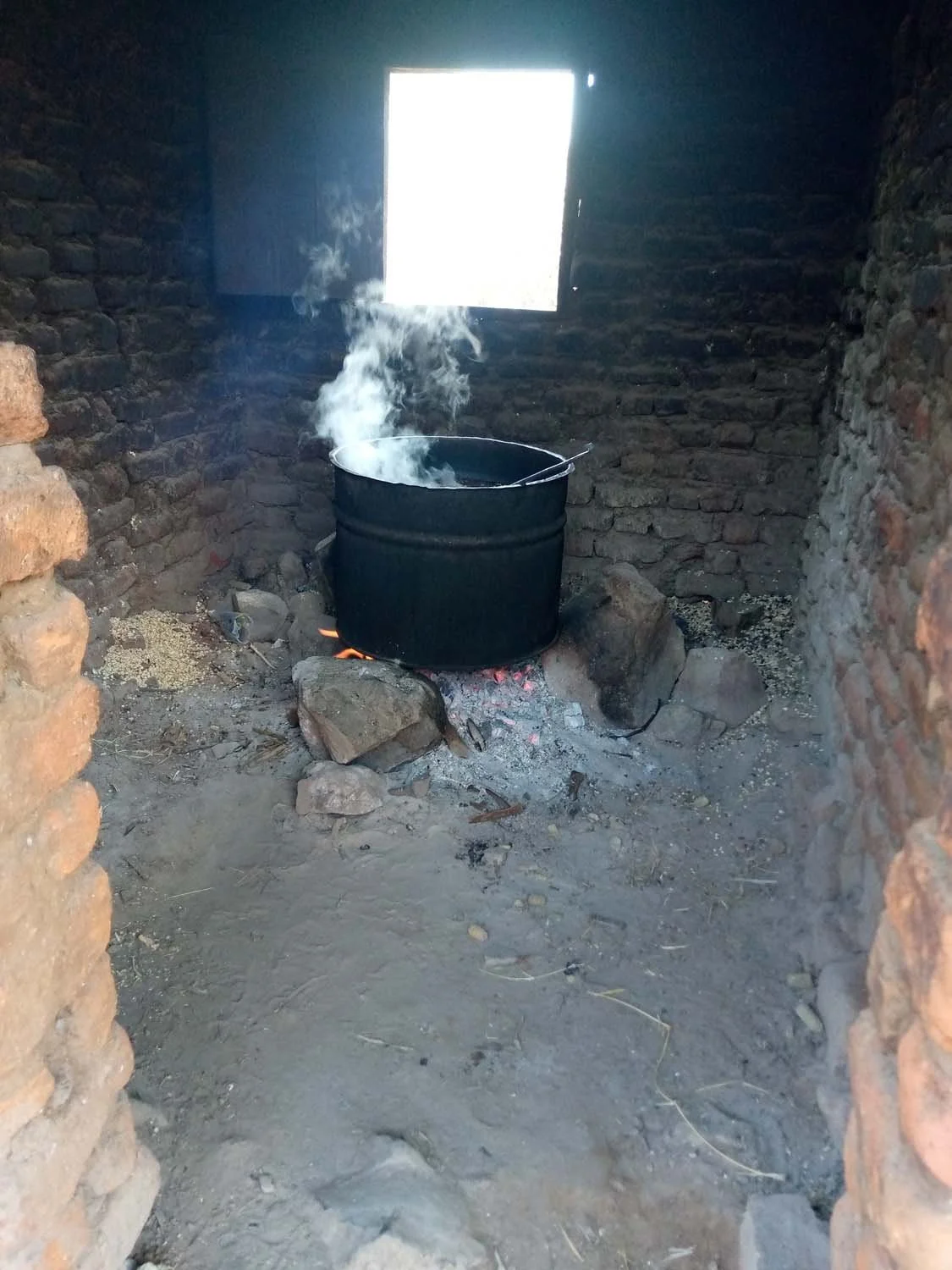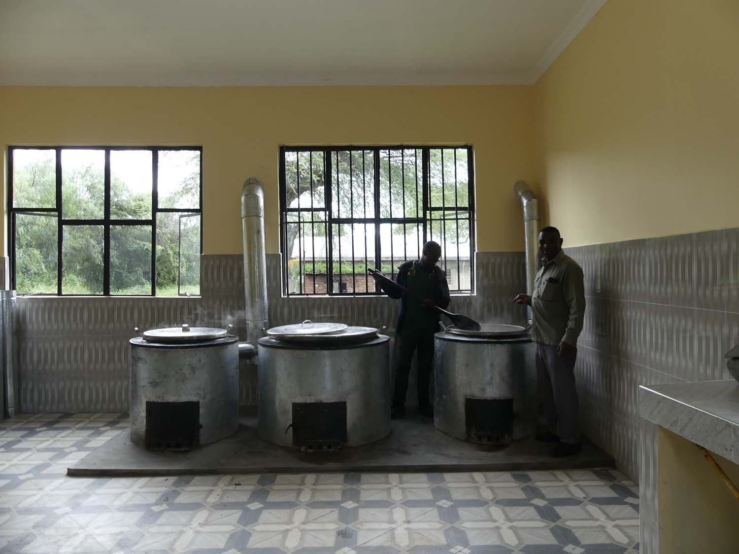 A clean and spacious kitchen with the capacity to prepare food for an entire student population is an integral part of a successful school lunch program. The kitchens built by RVP are free-standing buildings that contain sinks for washing and food preparation, a storage room for keeping grain away from rodents, and fuel-efficient stoves that burn substantially less wood than an open fire.
